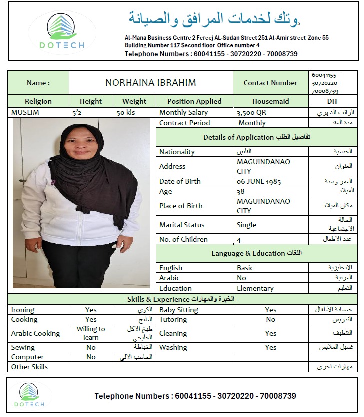 FATHIMA HAMNA Domestic worker - Sri Lanka