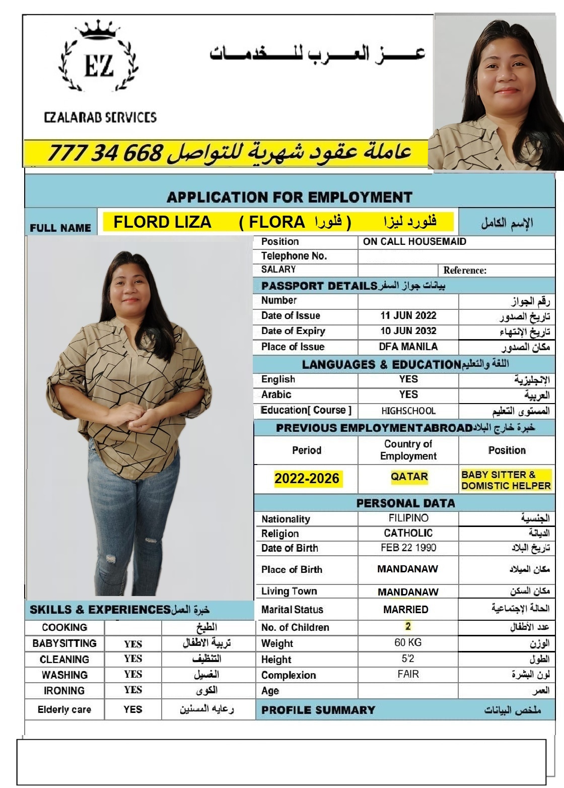 DOMESTIC WORKER-FILIPINA Domestic worker - Philippines