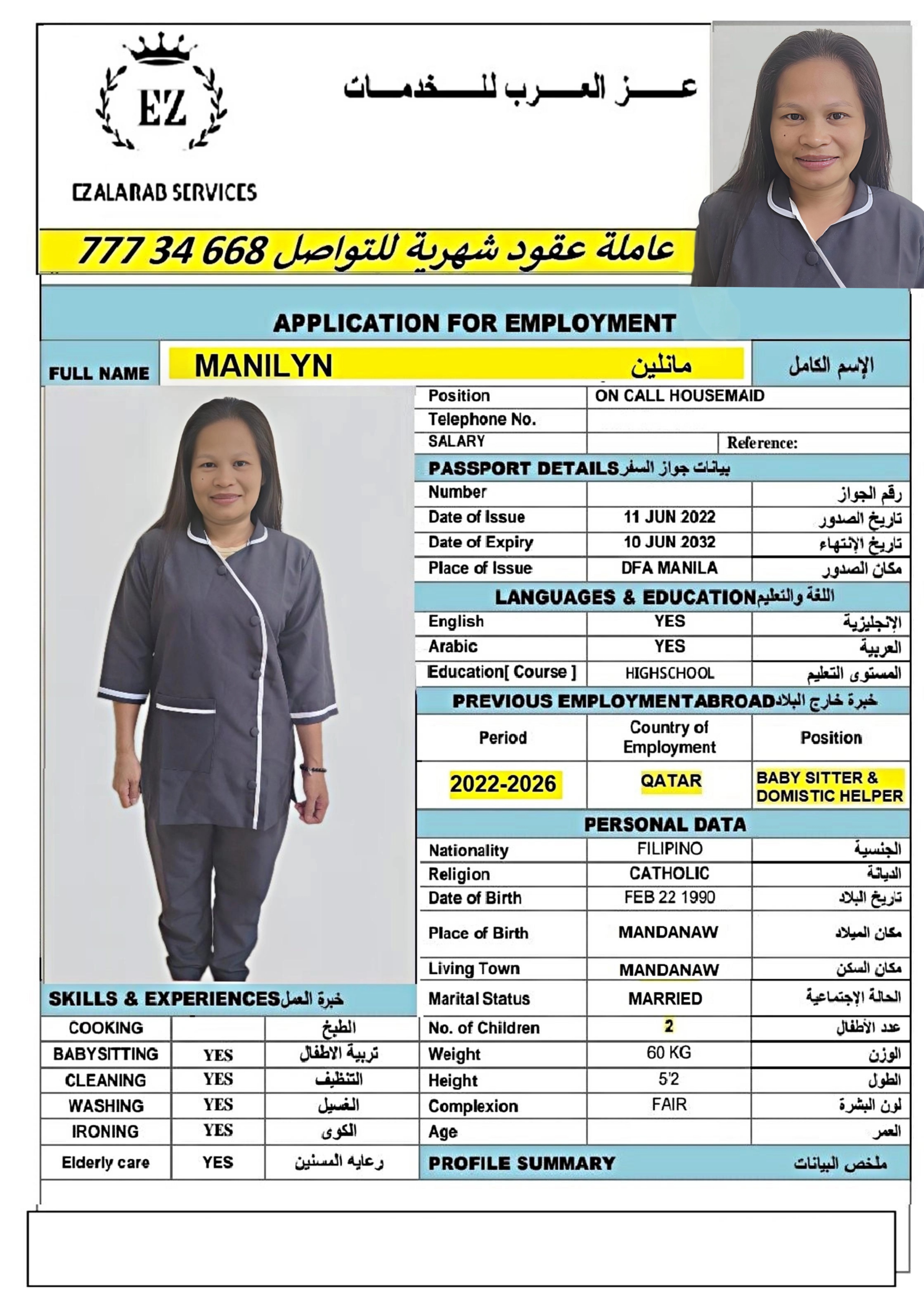 JHONALYN DONA BASICULAN Domestic worker - Philippines