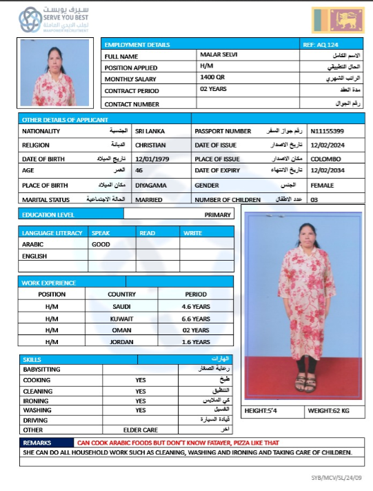 SHE HAS 14 YEARS OF EXPERIENCE IN GULF COUNTRY AND JORDAN