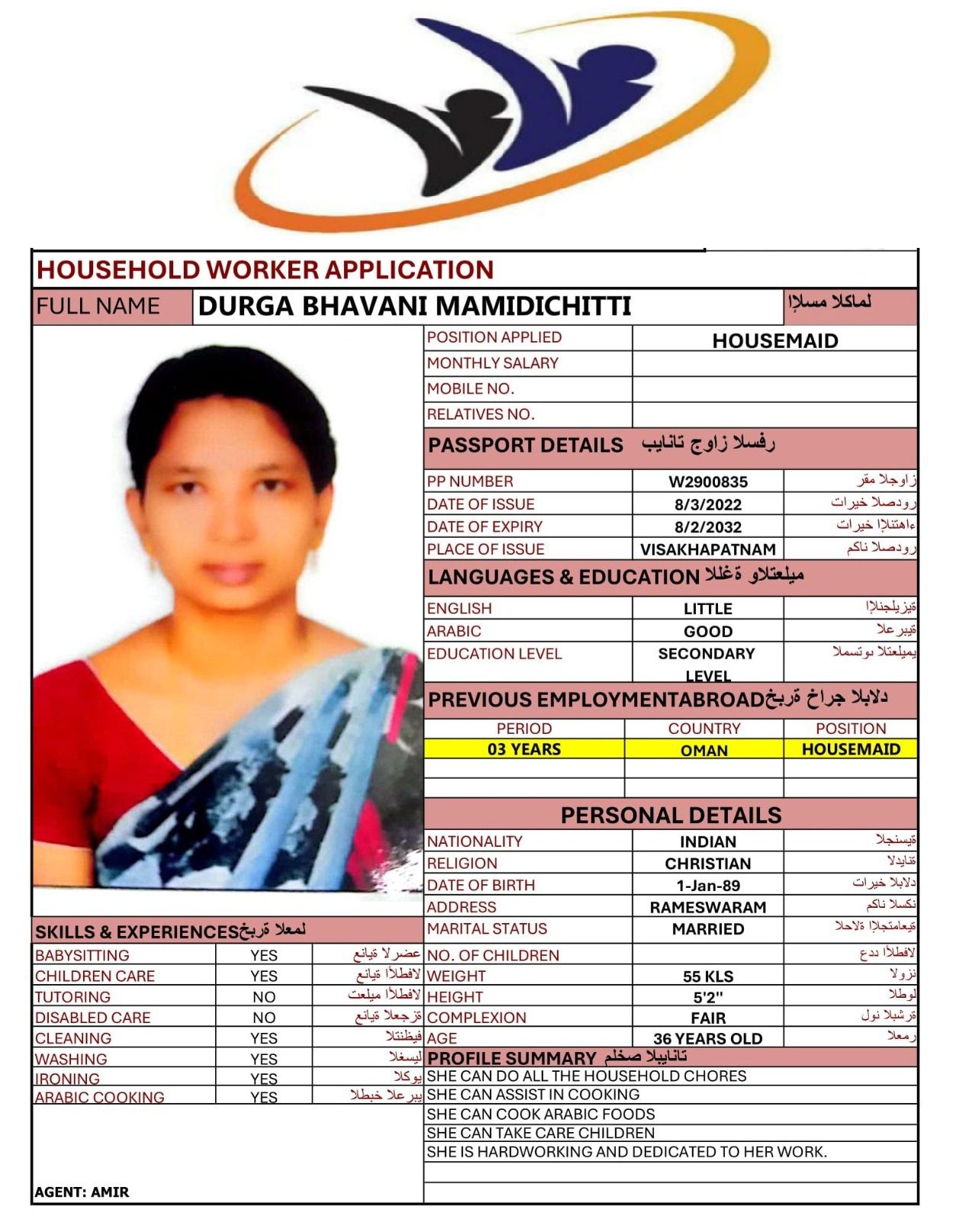 Name - English DURRGGAA BHAVANI MAMIDICHTTI