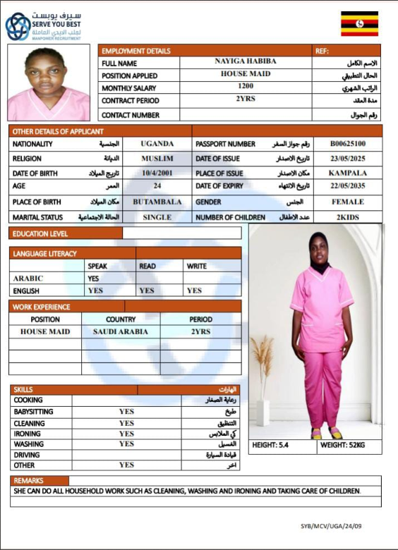 SHE CAN COO,K WASH, IRON, CLEAN,AND BABYSITING