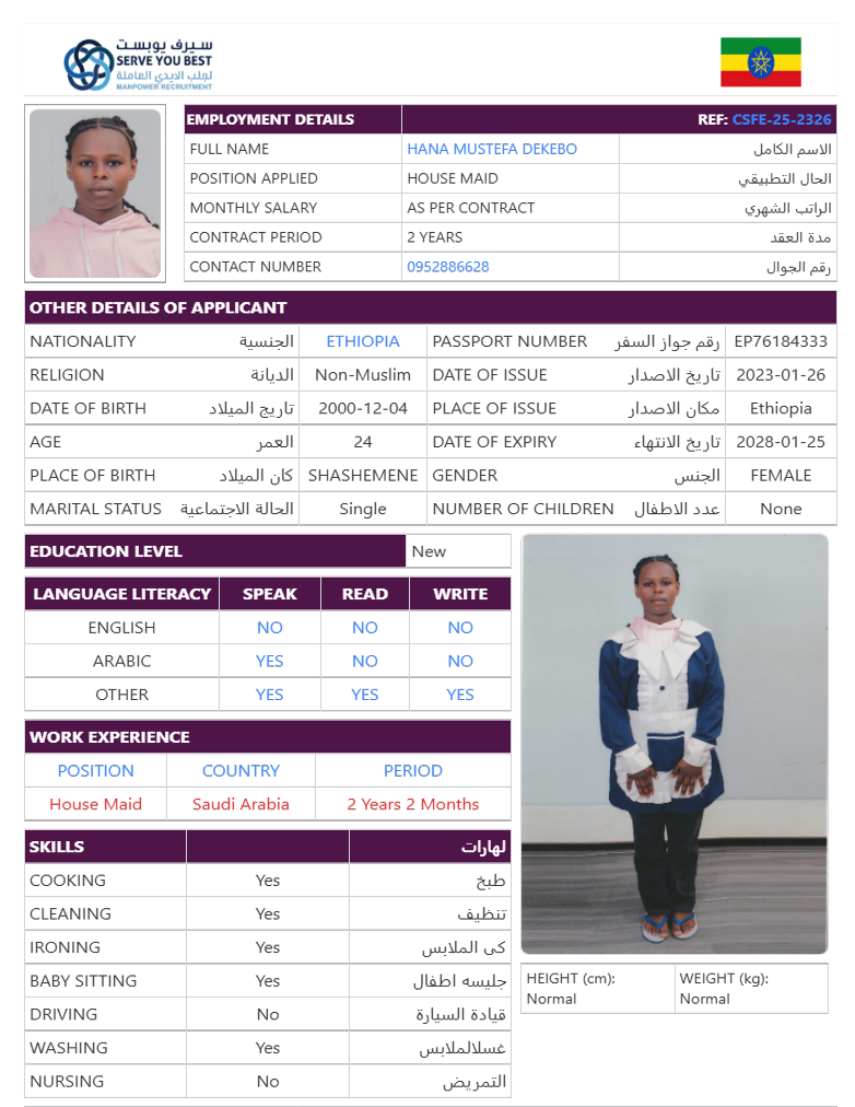 Welcome Are you looking for a driver, nurse, house manager, cleaner, nanny, secretary, professional workers for companies, security and guard personnel, foreman .... etc. Have you spent a long time looking for a maid? Have you made a great effort to find the right person? But to no avail ... Don't worry, we have the perfect solution to your problem Services…