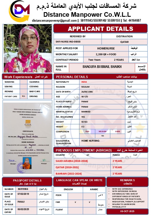 SHAFUGA BI ISMAIL SHAIKH (Temporarily unavailable. Selected by another customer and waiting for booking confirmation)