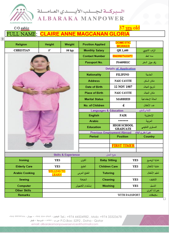 Name - English CLAIRE ANN MAGCANAN GLORIA