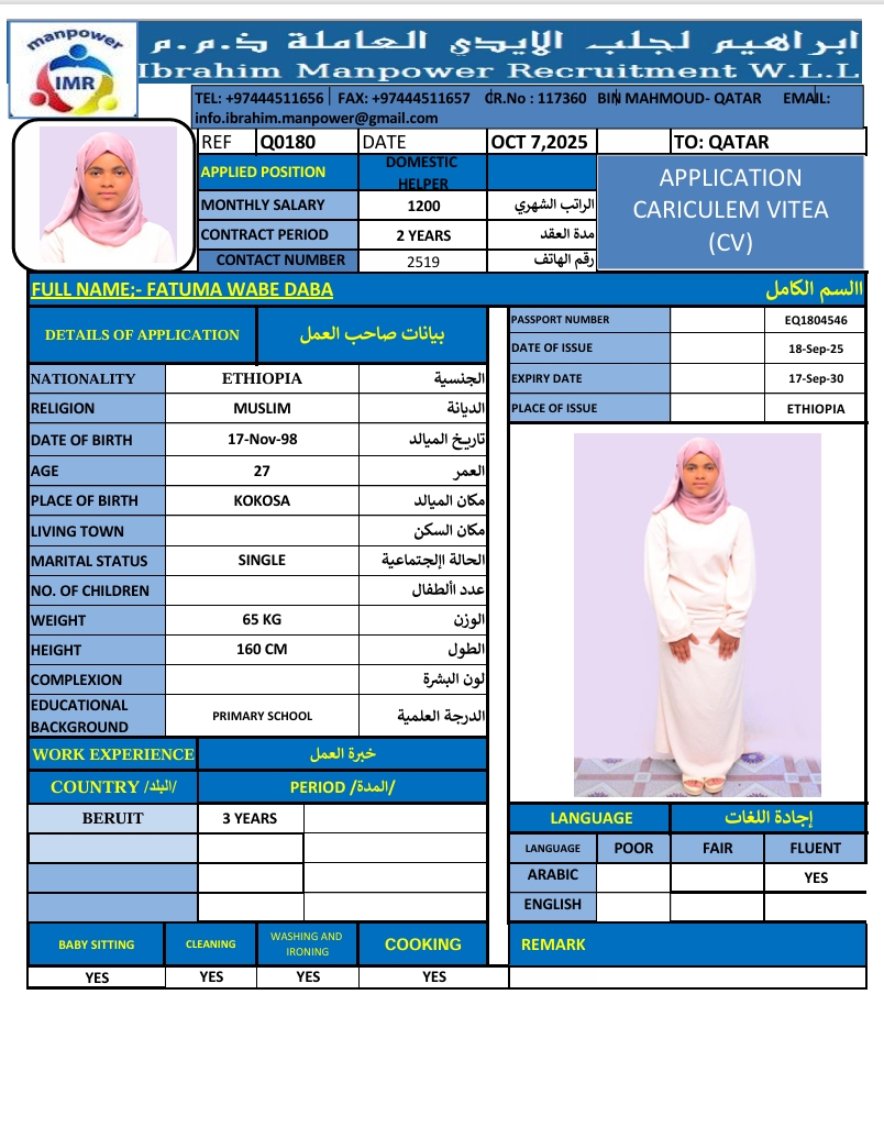 Welcome Are you looking for a driver, nurse, house manager, cleaner, nanny, secretary, professional workers for companies, security and guard personnel, foreman .... etc. Have you spent a long time looking for a maid? Have you made a great effort to find the right person? But to no avail ... Don't worry, we have the perfect solution to your problem Services…