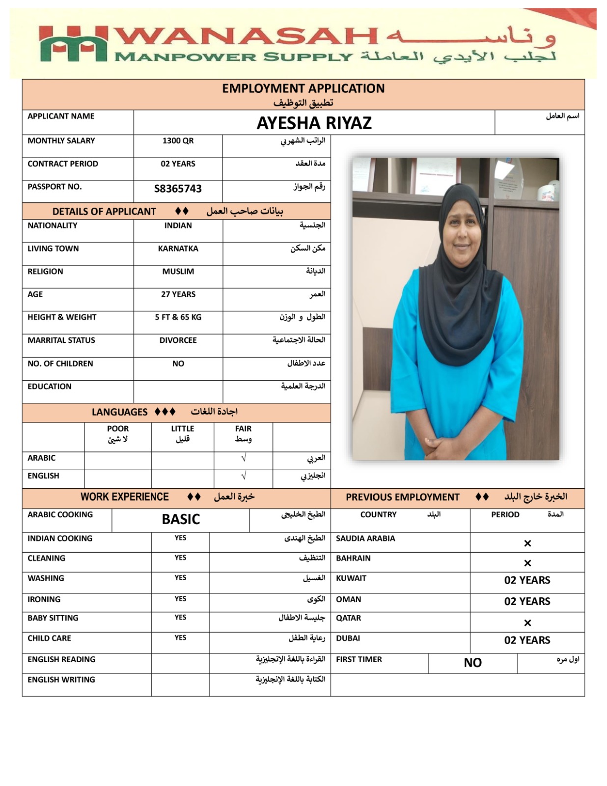 Name - English AYESHA RIYAZ / AVAILABLE IN DOHA