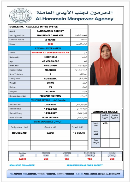 Welcome Are you looking for a driver, nurse, house manager, cleaner, nanny, secretary, professional workers for companies, security and guard personnel, foreman .... etc. Have you spent a long time looking for a maid? Have you made a great effort to find the right person? But to no avail ... Don't worry, we have the perfect solution to your problem Services…