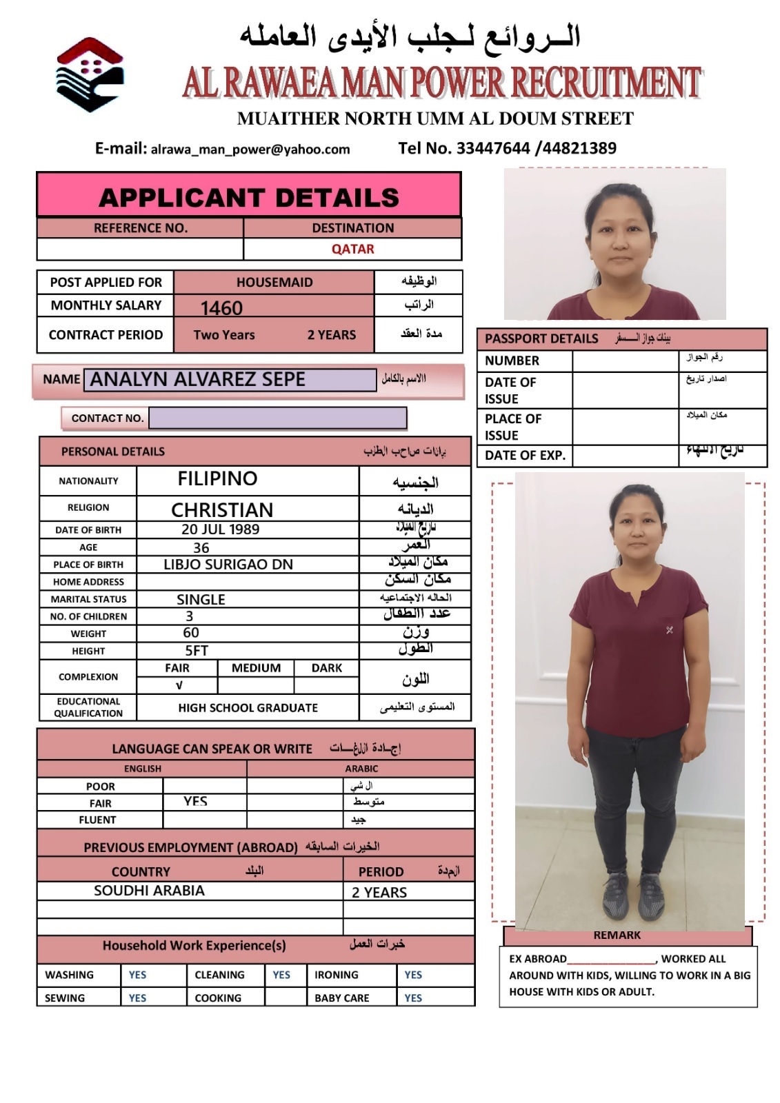 Name - English ANALYN ALVAREZ SEPE GTYH