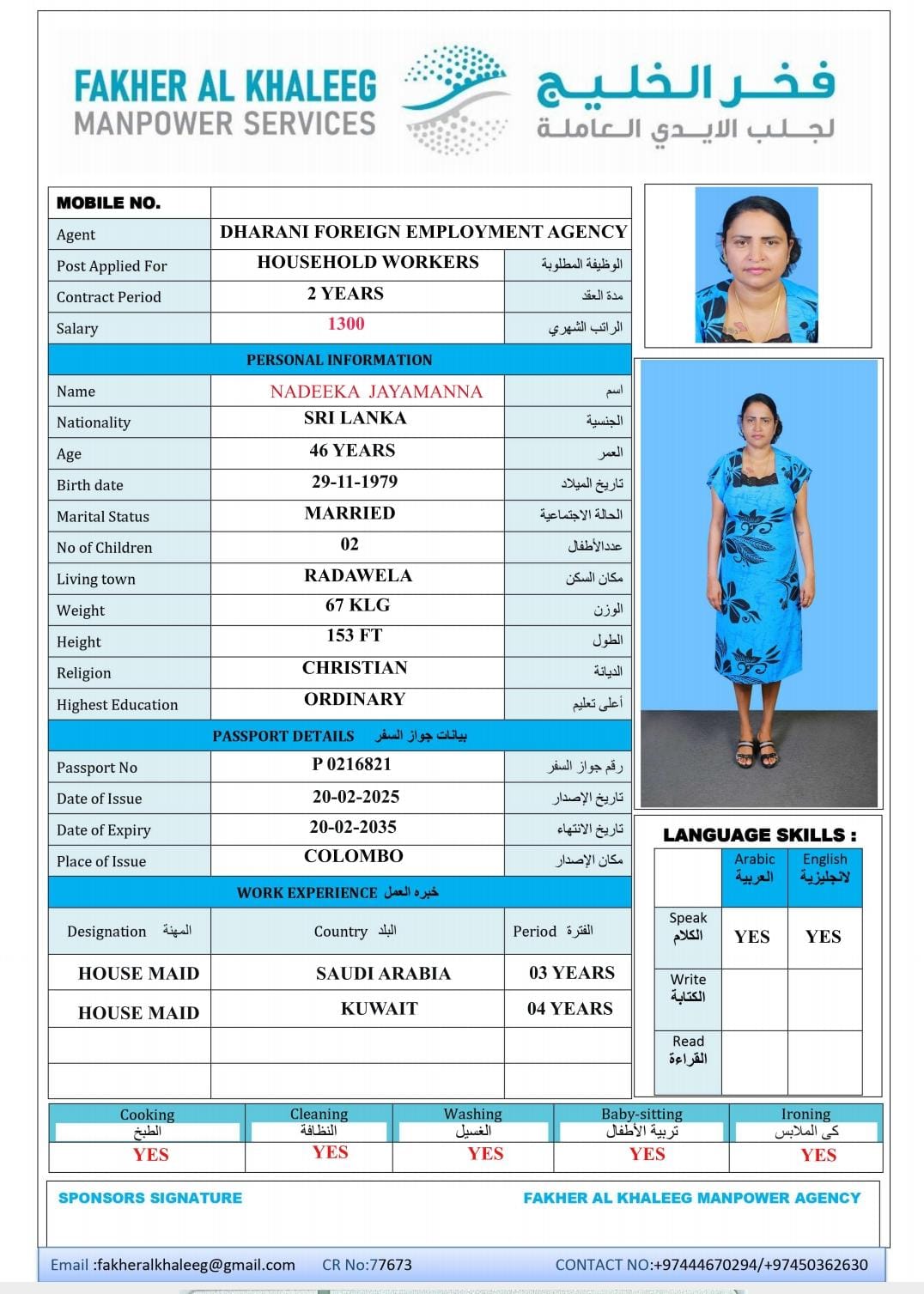 Welcome Are you looking for a driver, nurse, house manager, cleaner, nanny, secretary, professional workers for companies, security and guard personnel, foreman .... etc. Have you spent a long time looking for a maid? Have you made a great effort to find the right person? But to no avail ... Don't worry, we have the perfect solution to your problem Services…