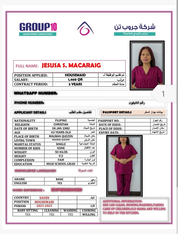 Name - English JESUSA S, MACARAIG/PHILIPPINES