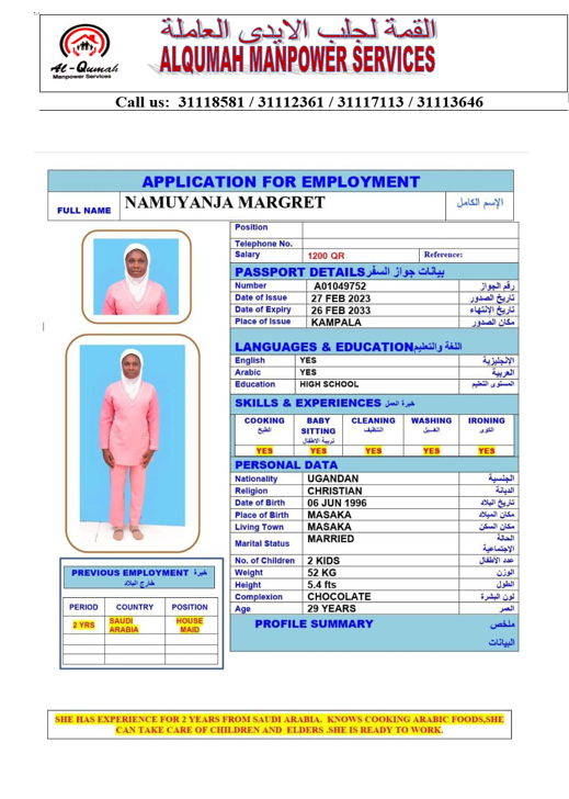 Welcome Are you looking for a driver, nurse, house manager, cleaner, nanny, secretary, professional workers for companies, security and guard personnel, foreman .... etc. Have you spent a long time looking for a maid? Have you made a great effort to find the right person? But to no avail ... Don't worry, we have the perfect solution to your problem Services…