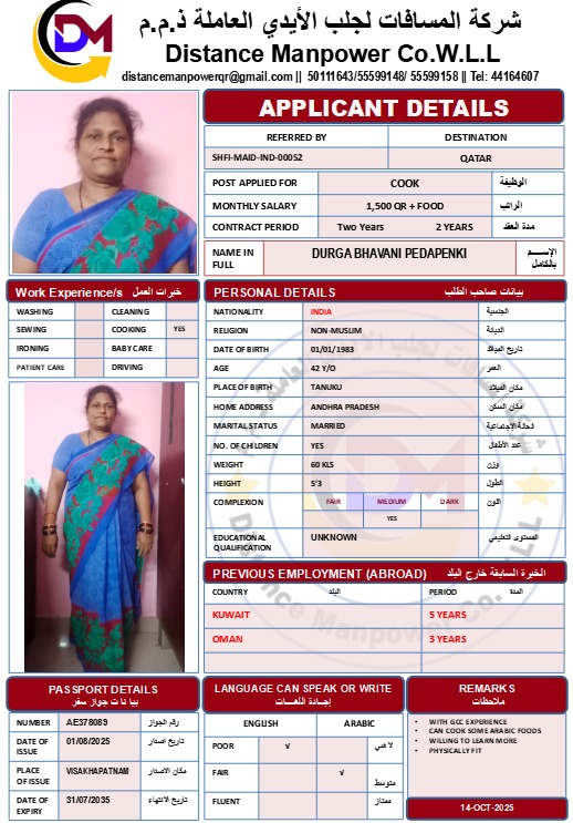 Name - English DURGA BHAVANI PEDAPENKI