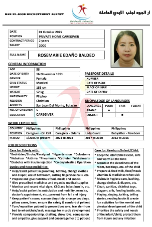 Name - English CAREGIVER - ROSE MARIE E. BALDE