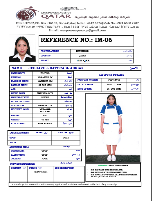 Name - English JESHAVILL BATOCAEL ABIGAN