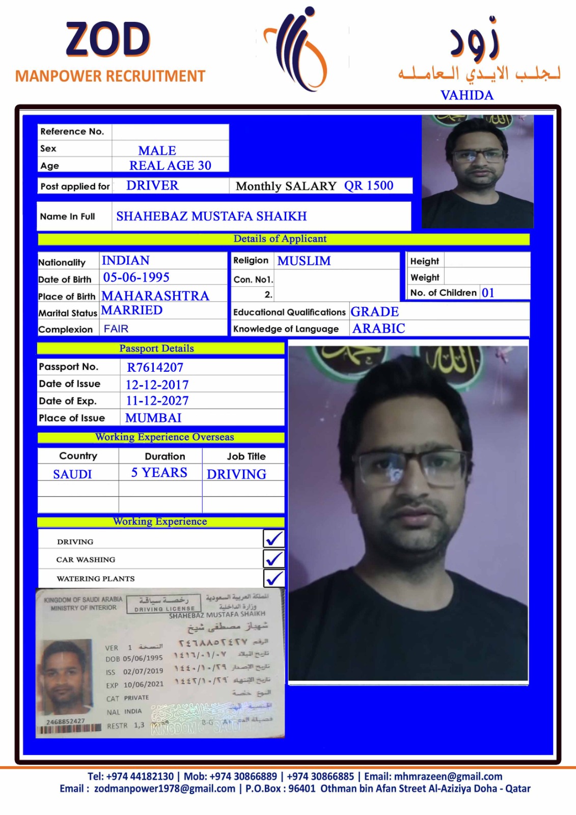 Name - English SHAHEBAZ MUSTAFA SHAIKH