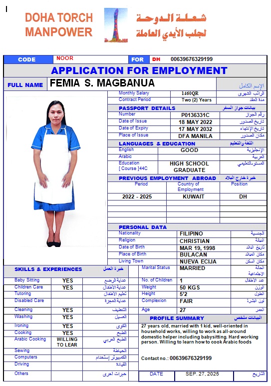 Welcome Are you looking for a driver, nurse, house manager, cleaner, nanny, secretary, professional workers for companies, security and guard personnel, foreman .... etc. Have you spent a long time looking for a maid? Have you made a great effort to find the right person? But to no avail ... Don't worry, we have the perfect solution to your problem Services…