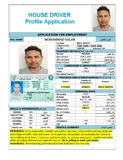 Welcome Are you looking for a driver, nurse, house manager, cleaner, nanny, secretary, professional workers for companies, security and guard personnel, foreman .... etc. Have you spent a long time looking for a maid? Have you made a great effort to find the right person? But to no avail ... Don't worry, we have the perfect solution to your problem Services…