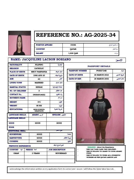 Name - English JACQUILINE LACSON SORIANO