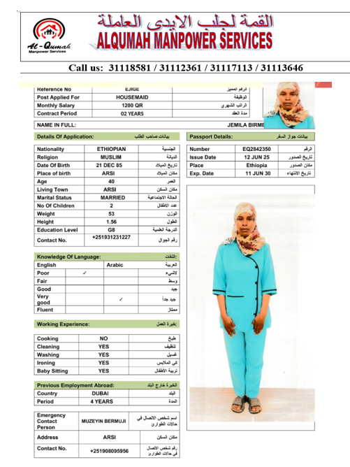 Welcome Are you looking for a driver, nurse, house manager, cleaner, nanny, secretary, professional workers for companies, security and guard personnel, foreman .... etc. Have you spent a long time looking for a maid? Have you made a great effort to find the right person? But to no avail ... Don't worry, we have the perfect solution to your problem Services…
