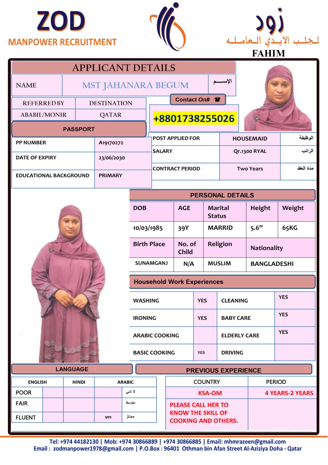 Welcome Are you looking for a driver, nurse, house manager, cleaner, nanny, secretary, professional workers for companies, security and guard personnel, foreman .... etc. Have you spent a long time looking for a maid? Have you made a great effort to find the right person? But to no avail ... Don't worry, we have the perfect solution to your problem Services…