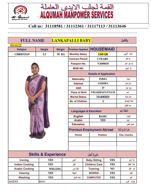 Welcome Are you looking for a driver, nurse, house manager, cleaner, nanny, secretary, professional workers for companies, security and guard personnel, foreman .... etc. Have you spent a long time looking for a maid? Have you made a great effort to find the right person? But to no avail ... Don't worry, we have the perfect solution to your problem Services…
