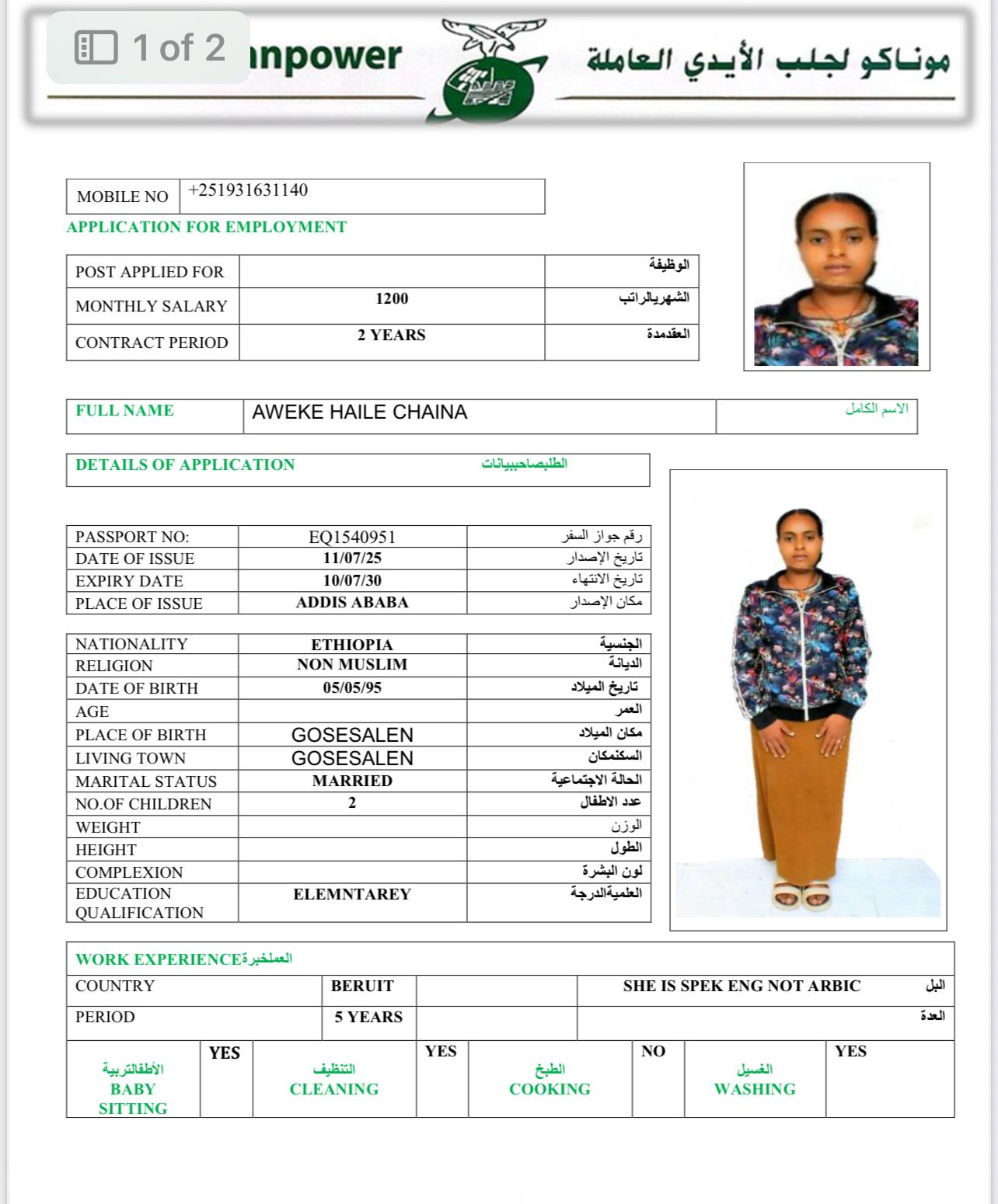 Name - English AWEKE HAILE CHAINA