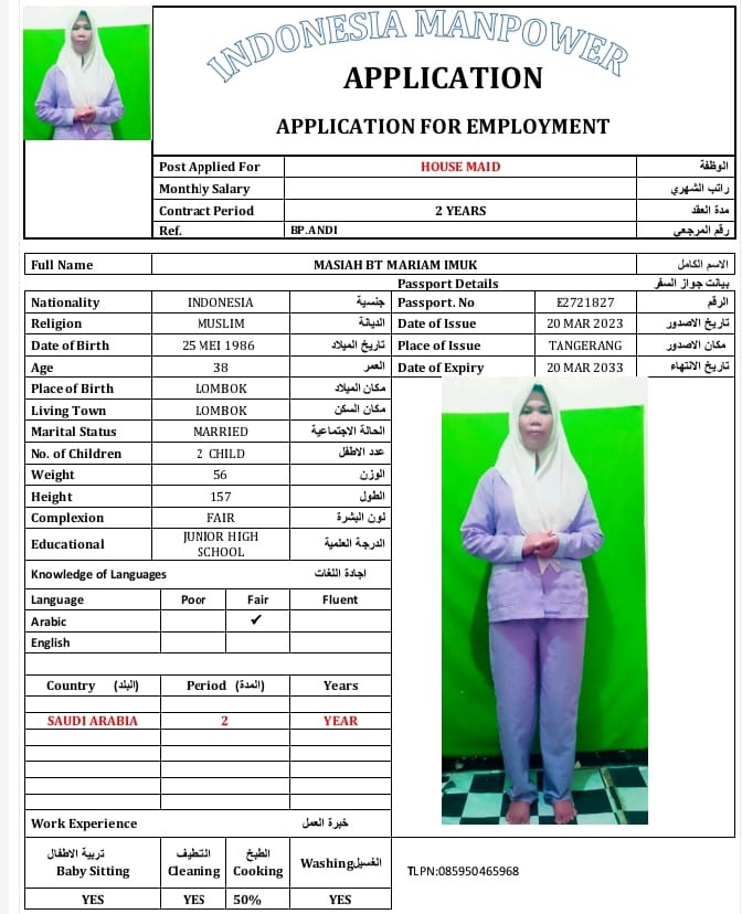 Name - English MASIAH BT MARIAM IMUK