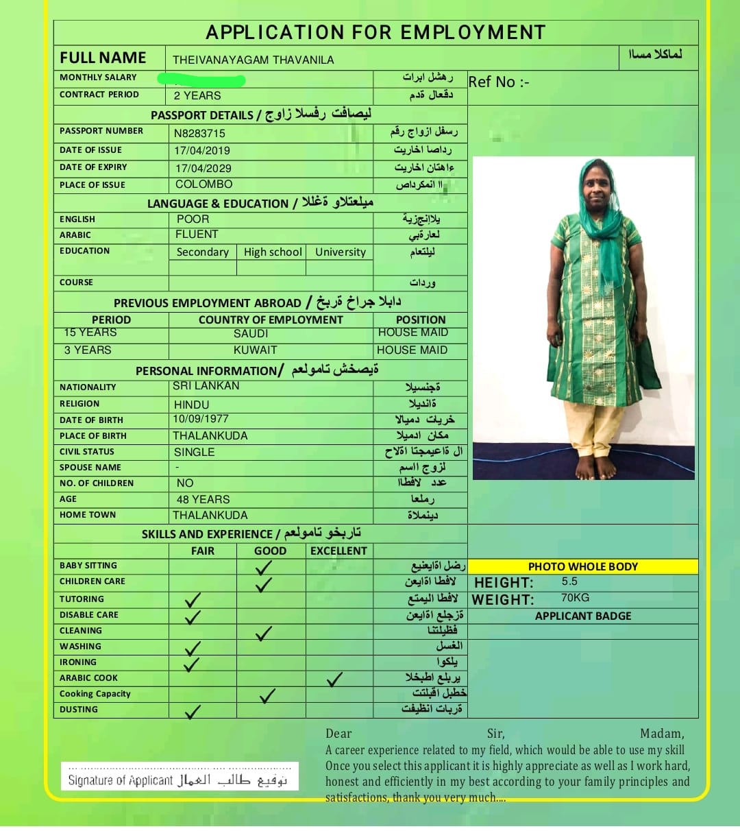 Name - English THEIVANAYAGAM THAVANILA