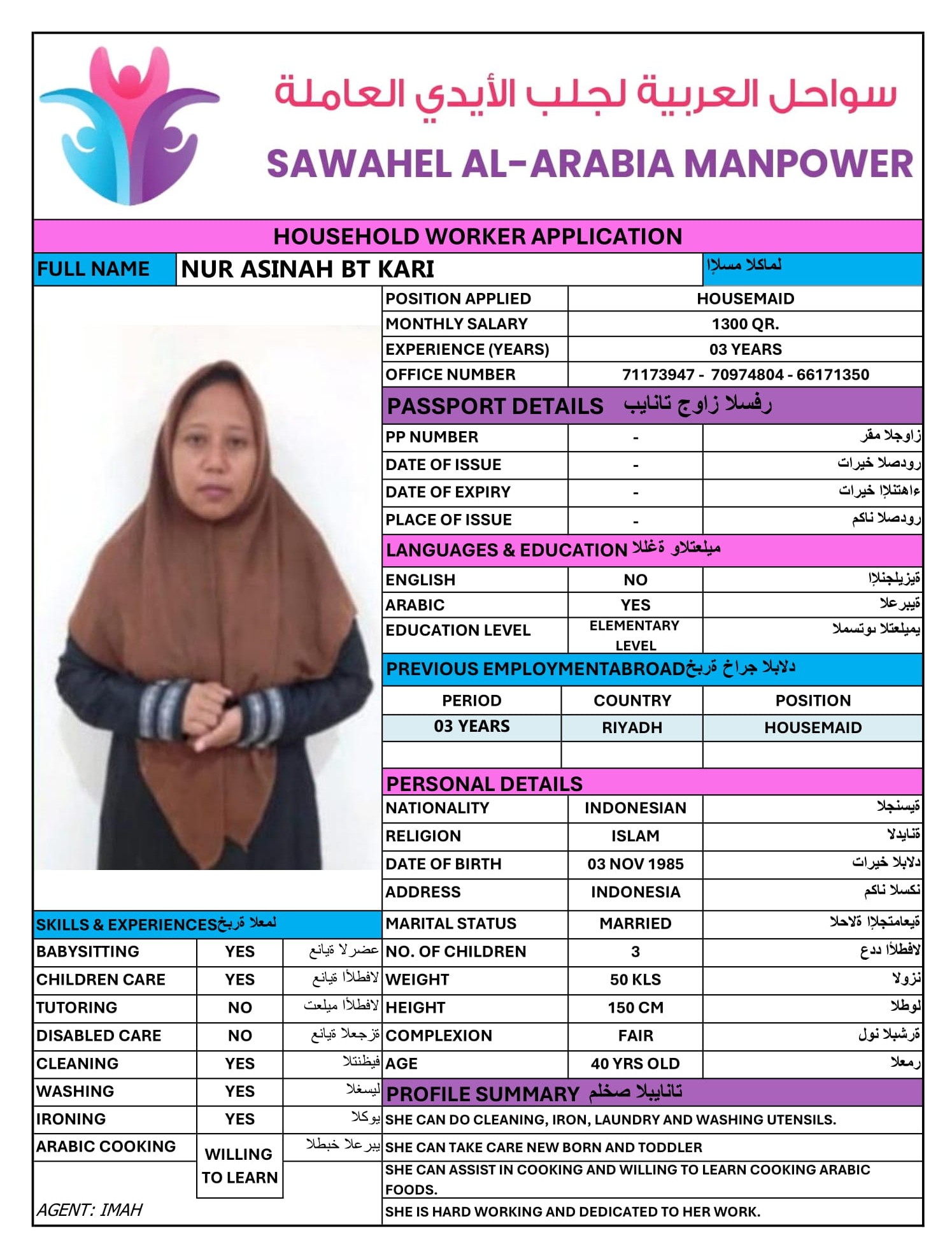 Name - English NUR ASINAH BT KARI - INDONESIA 01