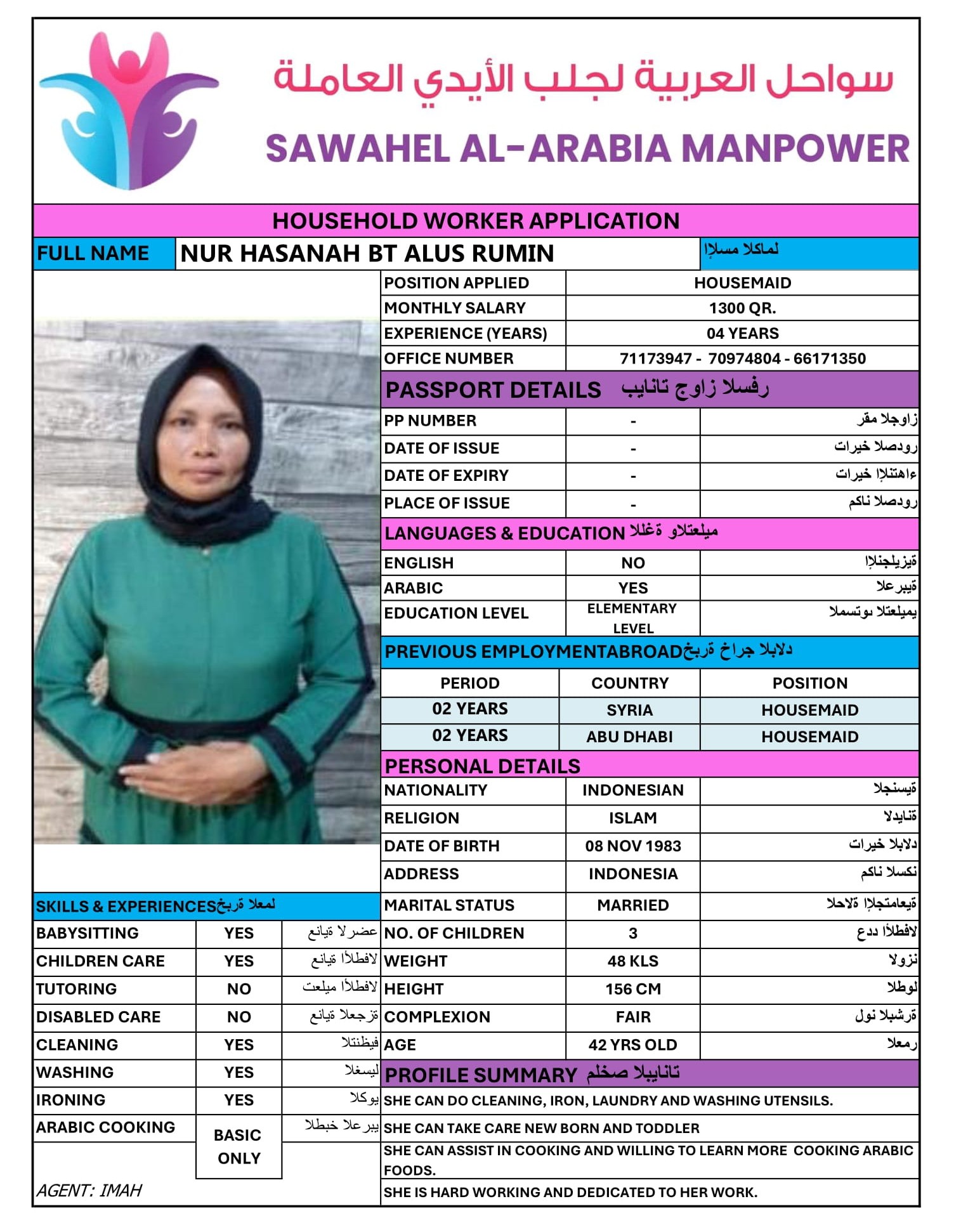 NUR HASANAH BT ALUS RUMIN - INDONESIA 01