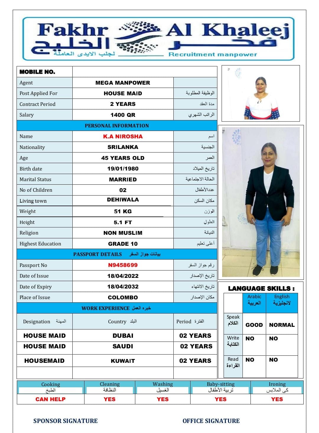 Welcome Are you looking for a driver, nurse, house manager, cleaner, nanny, secretary, professional workers for companies, security and guard personnel, foreman .... etc. Have you spent a long time looking for a maid? Have you made a great effort to find the right person? But to no avail ... Don't worry, we have the perfect solution to your problem Services…
