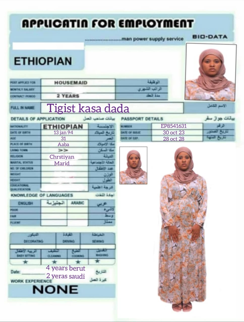 Name - English TIGIST KASA DADA