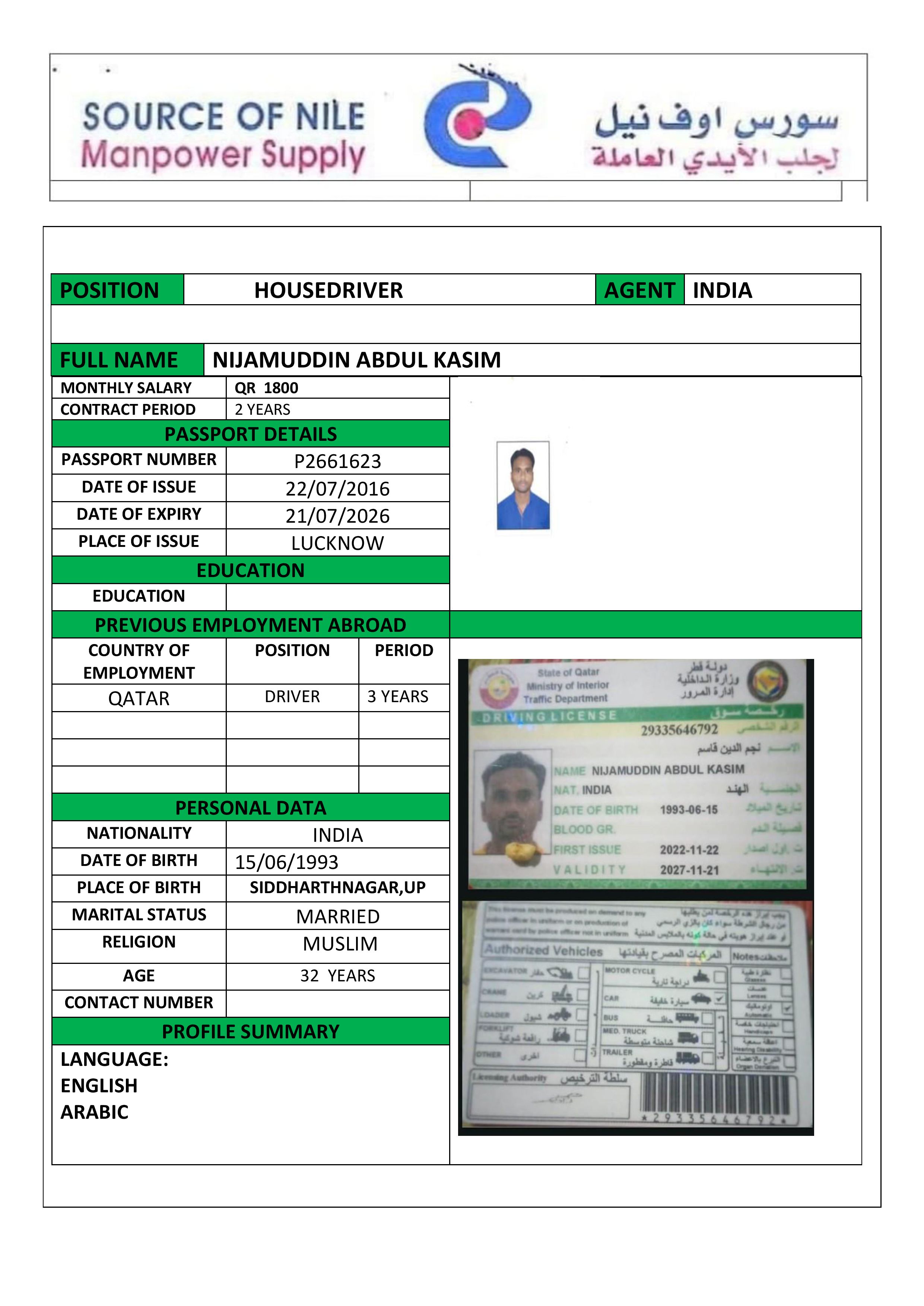 Name - English NIJAMUDDIN ABDUL KASIM