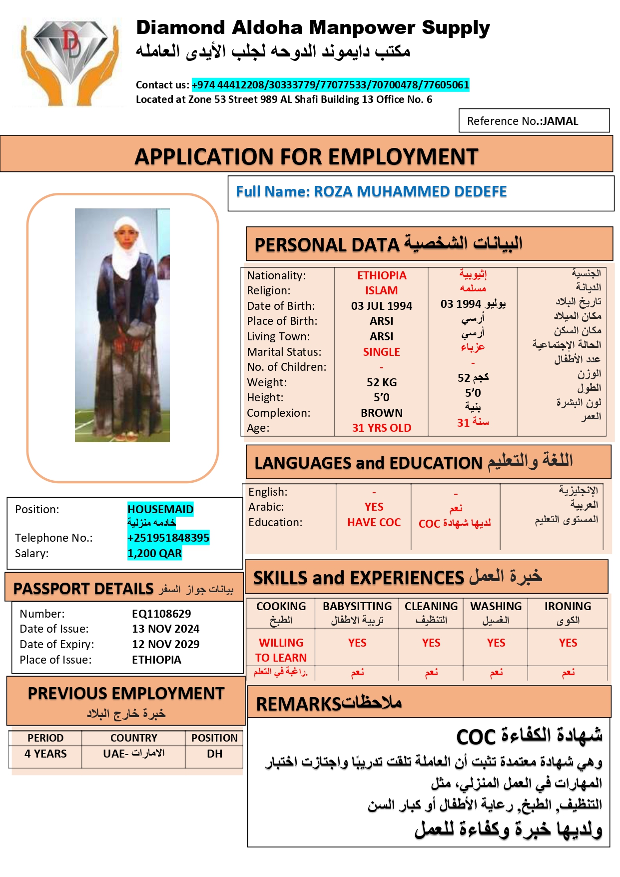 Name - English ROZA MUHAMMED DEDEFE