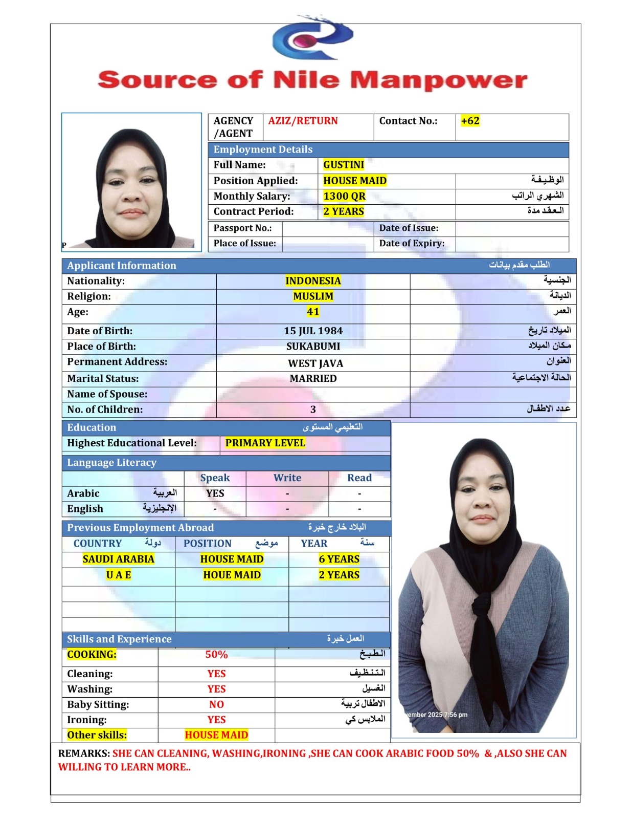 Name - English GUSTINI - INDONESIA HARD WORKING 4