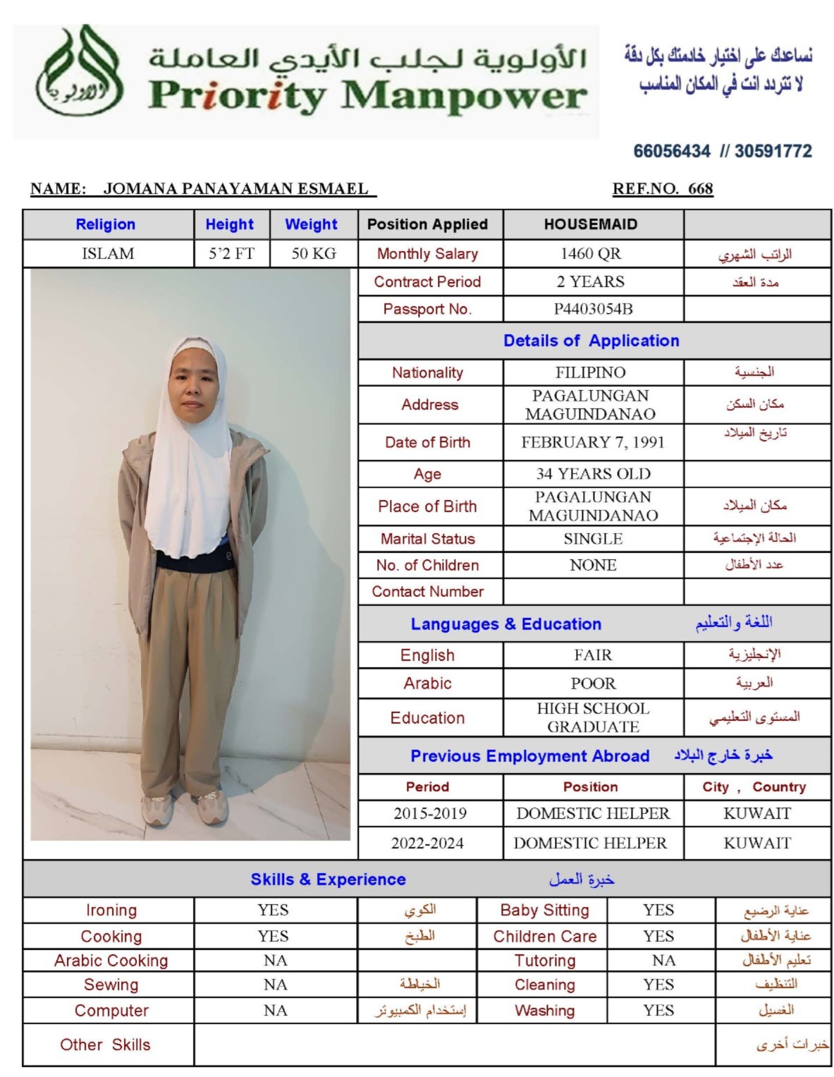 Welcome Are you looking for a driver, nurse, house manager, cleaner, nanny, secretary, professional workers for companies, security and guard personnel, foreman .... etc. Have you spent a long time looking for a maid? Have you made a great effort to find the right person? But to no avail ... Don't worry, we have the perfect solution to your problem Services…
