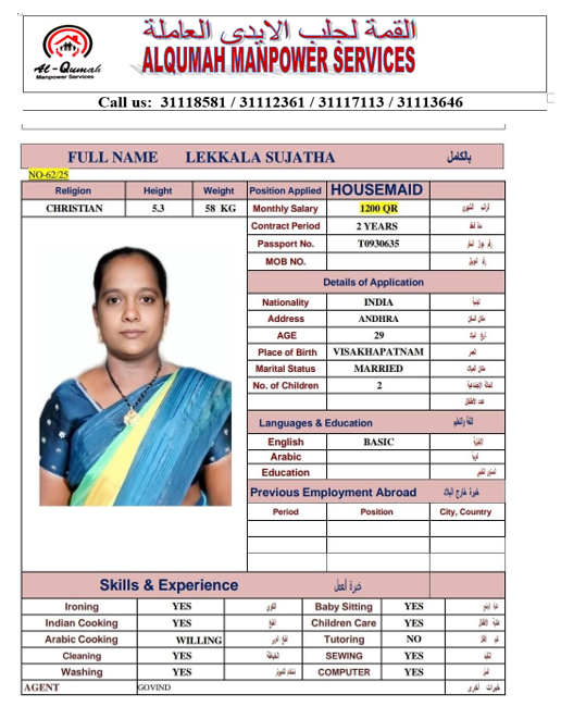 Welcome Are you looking for a driver, nurse, house manager, cleaner, nanny, secretary, professional workers for companies, security and guard personnel, foreman .... etc. Have you spent a long time looking for a maid? Have you made a great effort to find the right person? But to no avail ... Don't worry, we have the perfect solution to your problem Services…