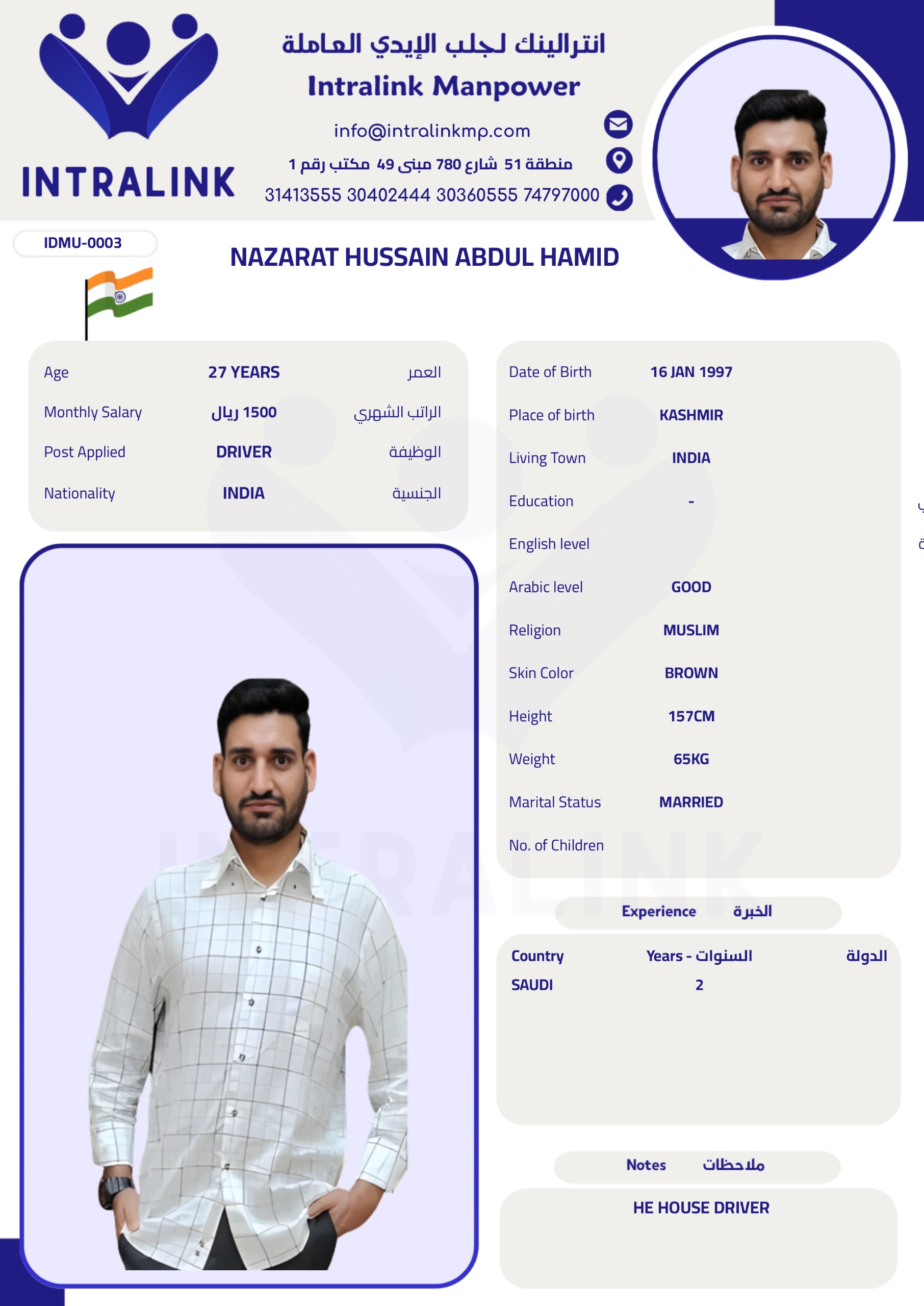 Welcome Are you looking for a driver, nurse, house manager, cleaner, nanny, secretary, professional workers for companies, security and guard personnel, foreman .... etc. Have you spent a long time looking for a maid? Have you made a great effort to find the right person? But to no avail ... Don't worry, we have the perfect solution to your problem Services…