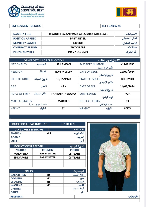 Welcome Are you looking for a driver, nurse, house manager, cleaner, nanny, secretary, professional workers for companies, security and guard personnel, foreman .... etc. Have you spent a long time looking for a maid? Have you made a great effort to find the right person? But to no avail ... Don't worry, we have the perfect solution to your problem Services…