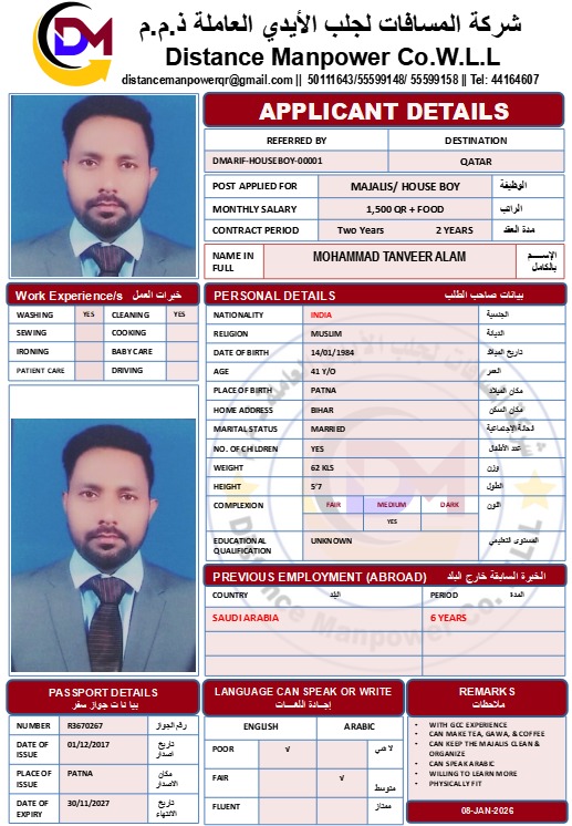 Welcome Are you looking for a driver, nurse, house manager, cleaner, nanny, secretary, professional workers for companies, security and guard personnel, foreman .... etc. Have you spent a long time looking for a maid? Have you made a great effort to find the right person? But to no avail ... Don't worry, we have the perfect solution to your problem Services…