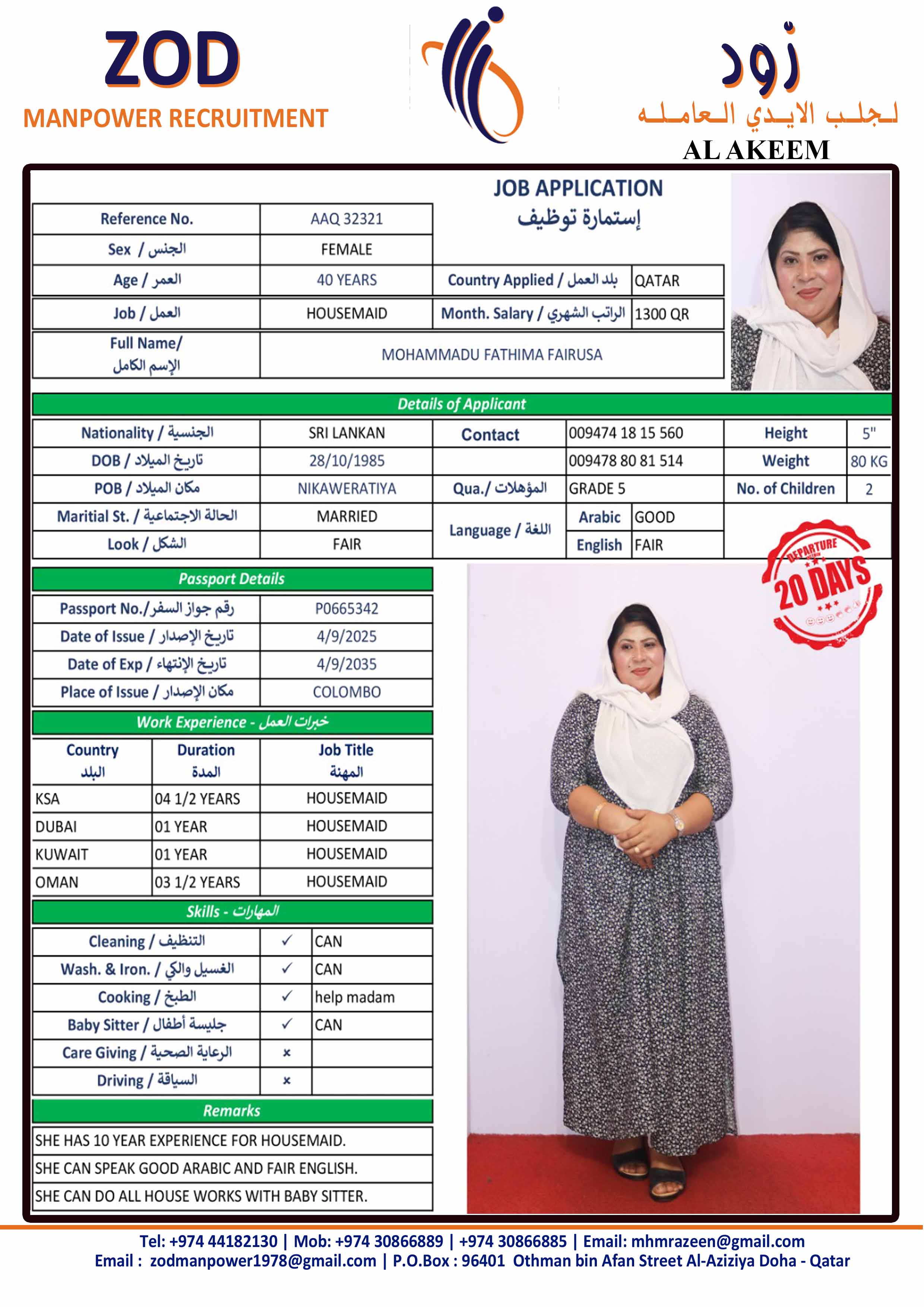 Name - English FATHIMA FAIRUSA MOHOMMADU