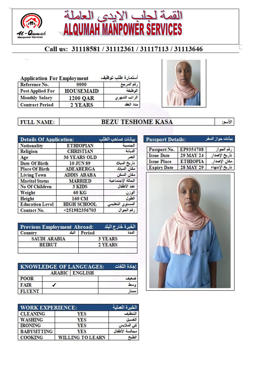 Welcome Are you looking for a driver, nurse, house manager, cleaner, nanny, secretary, professional workers for companies, security and guard personnel, foreman .... etc. Have you spent a long time looking for a maid? Have you made a great effort to find the right person? But to no avail ... Don't worry, we have the perfect solution to your problem Services…