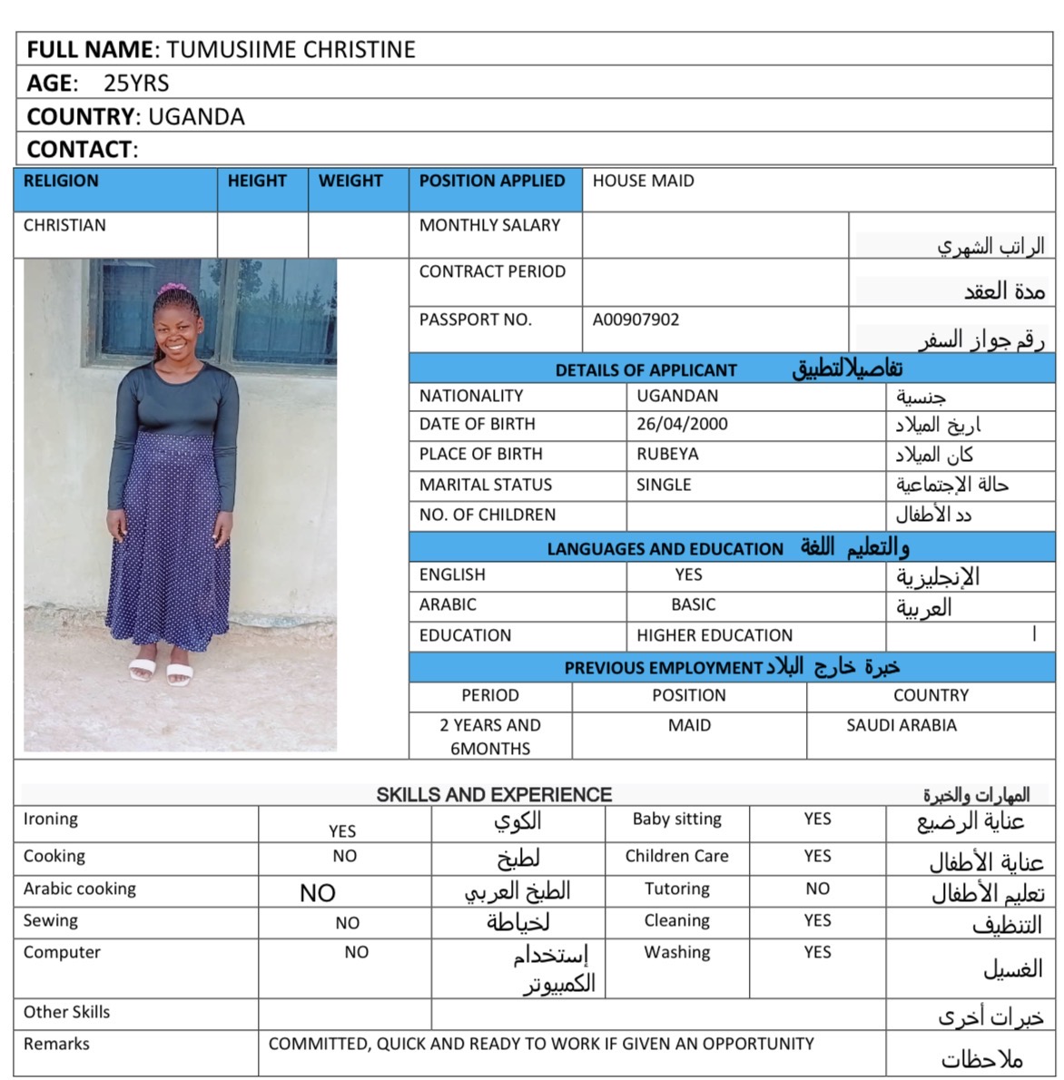 Name - English Tumusiime xtine