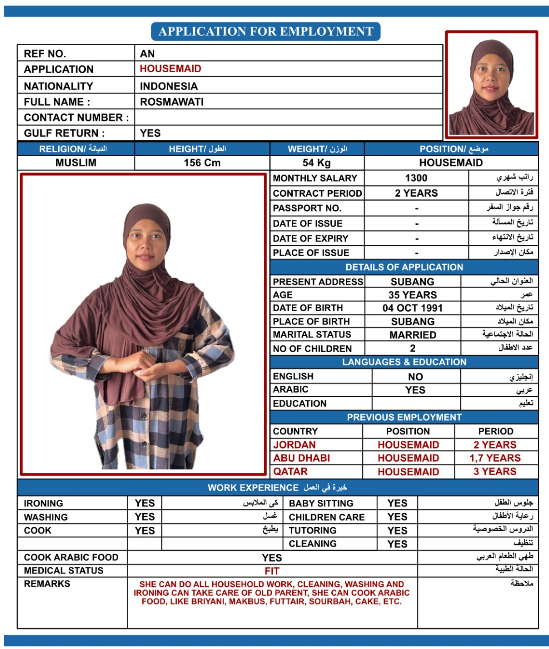 SHE KNOWS CLEANING WASHING IRONING TAKE CARE OF BABY SHE CAN COK ARABIC FOOD ALSO WILLING TO LEARN MORE