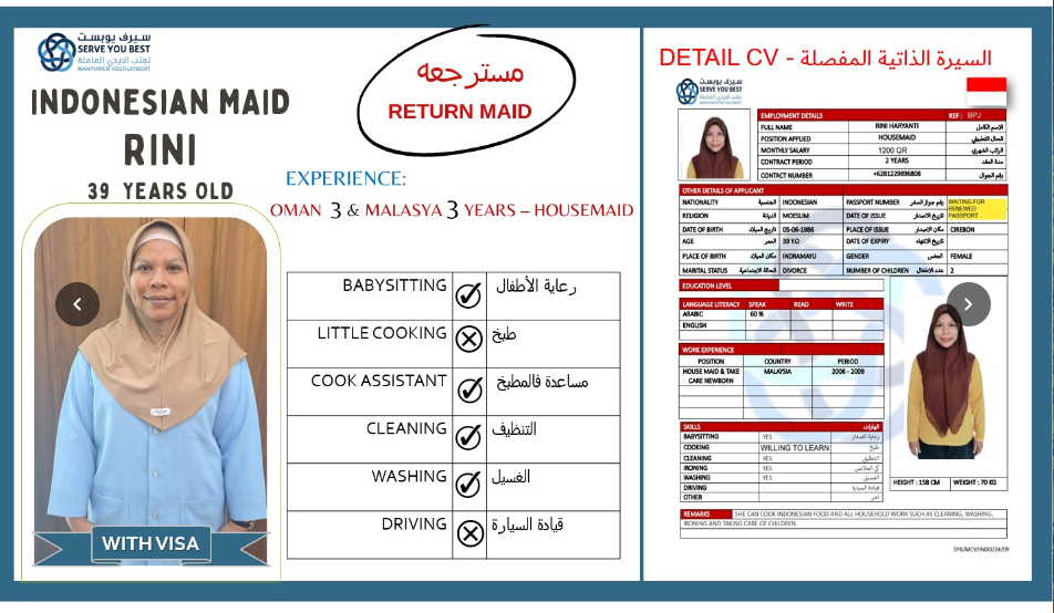 Welcome Are you looking for a driver, nurse, house manager, cleaner, nanny, secretary, professional workers for companies, security and guard personnel, foreman .... etc. Have you spent a long time looking for a maid? Have you made a great effort to find the right person? But to no avail ... Don't worry, we have the perfect solution to your problem Services…