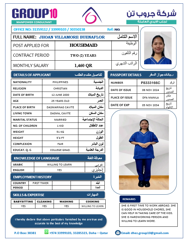 Name - English JHOAN VILLAMORE BUENAFLOR