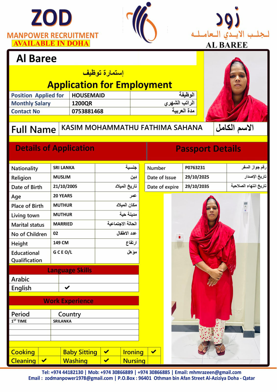Name - English KASIM MOHAMMATHU FATHIMA SAHANA