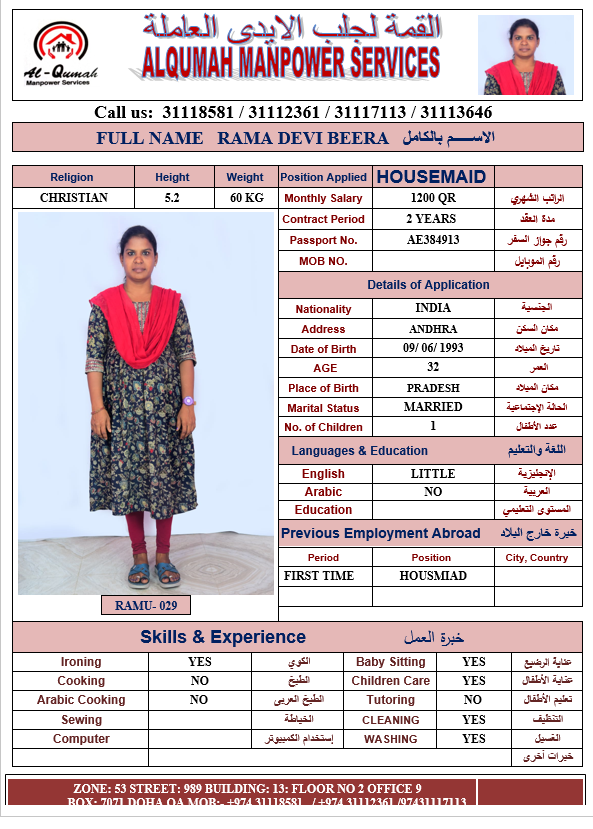 Name - English RAMA DEVI BEERA