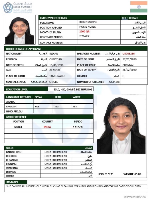 Name - English BERCY MOHAN